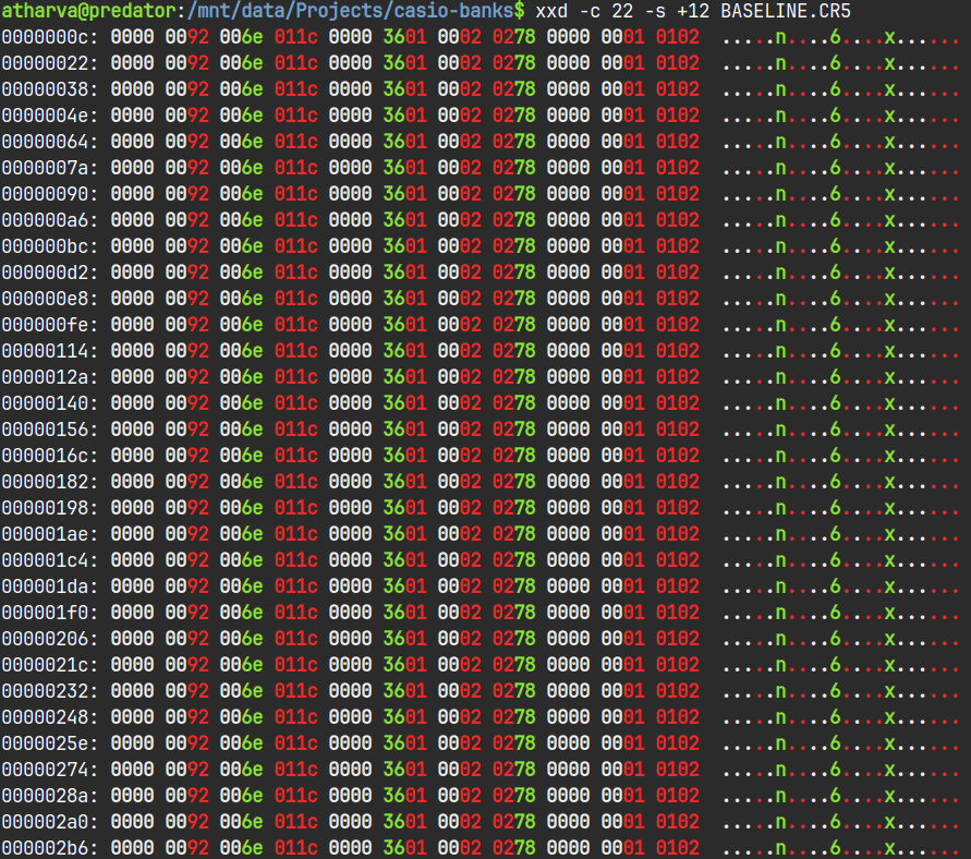 But first, I needed a better way of printing out the file contents. I started by modifying the xxd command like so: